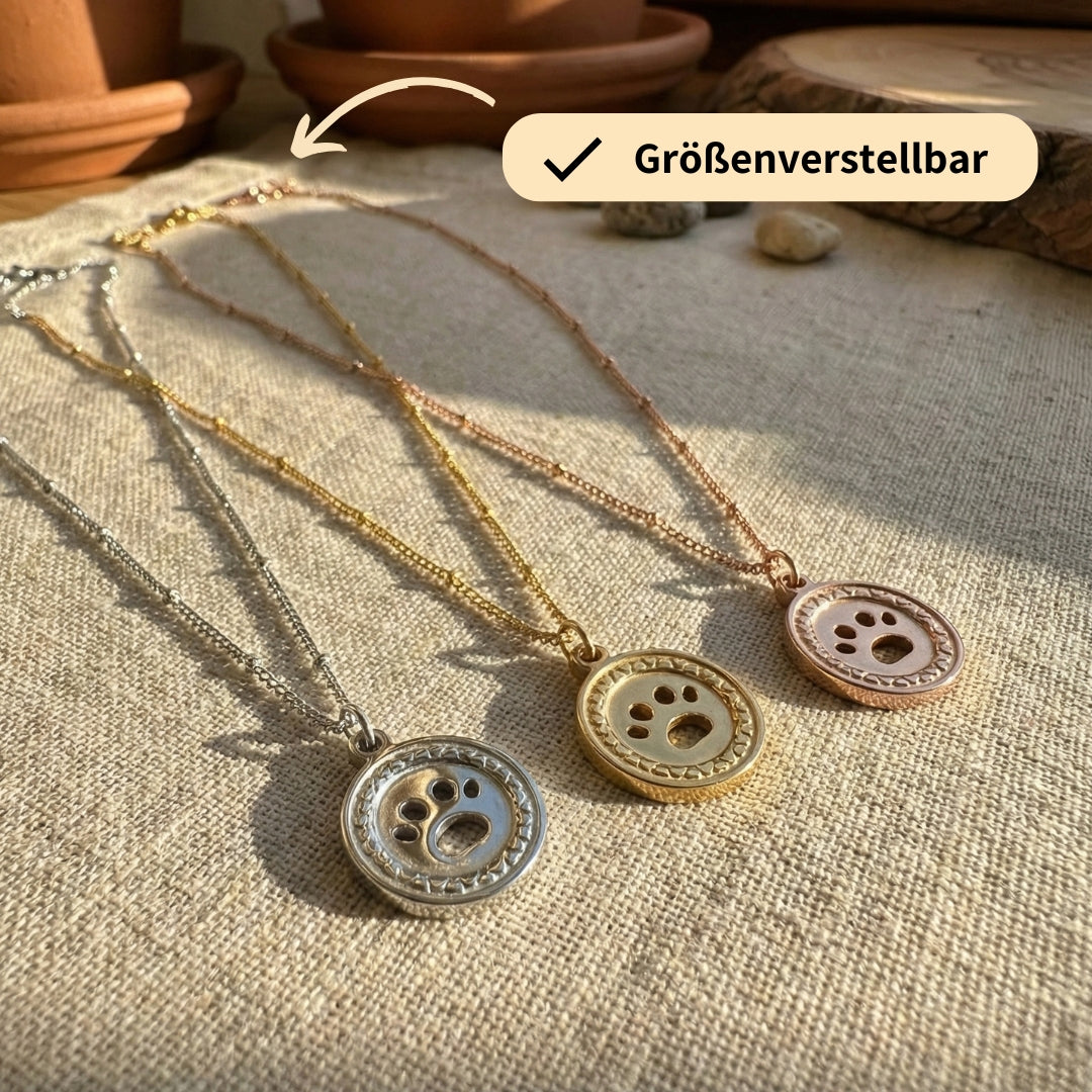 Entdecke unsere zauberhafte Pfotentaler Edelstahlkette! Der runde Anhänger mit fein ausgearbeiteter Pfote steht für Liebe, Treue und die besondere Verbindung zu deinem tierischen Herzensfreund. Durch sein zeitloses Design fängt der Pfotentaler das Licht sanft ein und wird zu einem liebevollen Blickfang für jeden Tag.
