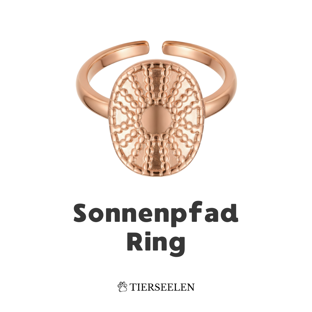 Der Sonnenpfad Ring steht für Hoffnung, Orientierung und all die kleinen Lichtmomente, die uns auf unserem Weg begleiten – besonders an der Seite eines tierischen Herzensfreundes. Seine strahlenartige Kreisform erinnert daran, dass selbst nach dunklen Zeiten wieder Licht folgt. Ein stilles Symbol für Vertrauen, Wärme und den gemeinsamen Weg, den ihr teilt.
