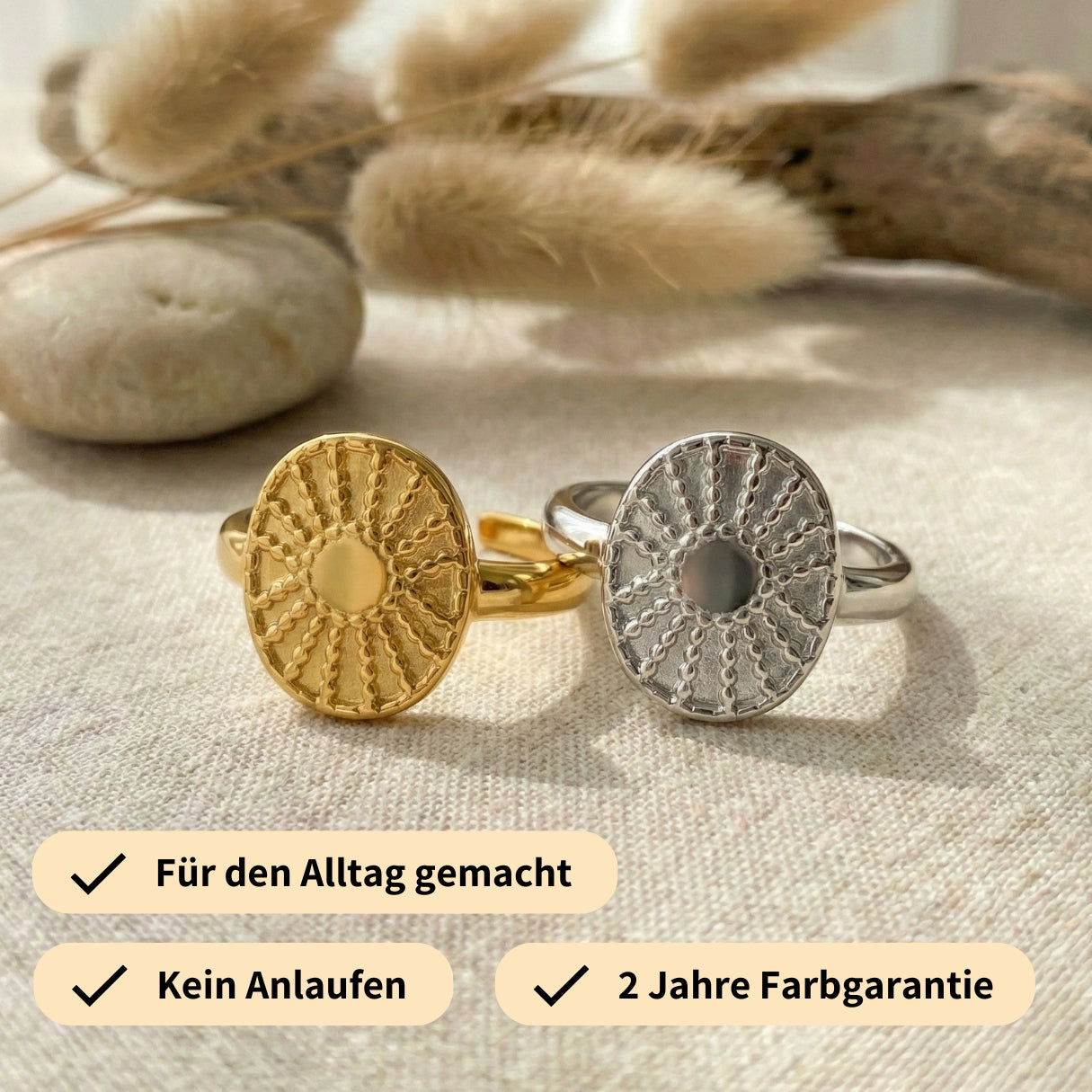 The Feather Ring is made of high-quality stainless steel, making it particularly robust and skin-friendly. Its delicate feather design gives it an elegant, light look, while the material ensures its durability and prevents tarnishing. A stylish companion for every day.